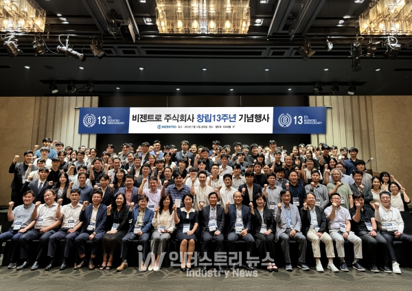 비젠트로는 지난 12일 창립 13주년을 맞아 기념행사를 개최했다고 18일 밝혔다. 행사에는 임직원 140여명이 참석했다. 행사에서는 회사에 기여한 공로가 큰 직원과 모범사원, 장기근속자들에게 표창장을 수여하는 자리도 마련됐다.