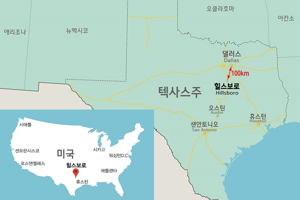 미국 텍사스주 댈러스 남쪽으로 약 100km 거리에 위치한 힐 카운티(Hill County)에 지어질 ‘힐스보로 태양광발전소’는 260MW의 설비용량과 연산 총 492GWh의 발전량을 갖췄다. 이는 미국기준 연간 약 4만6,000가구에 전력을 공급할 수 있는 규모다.