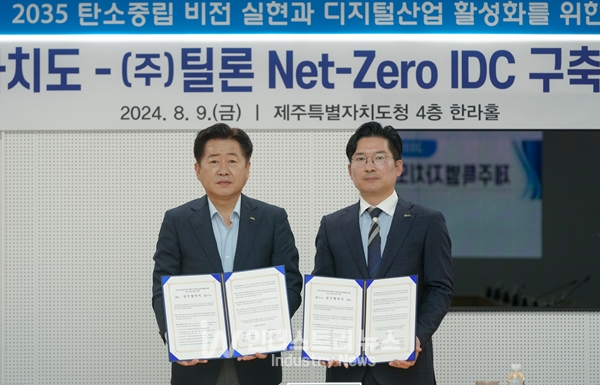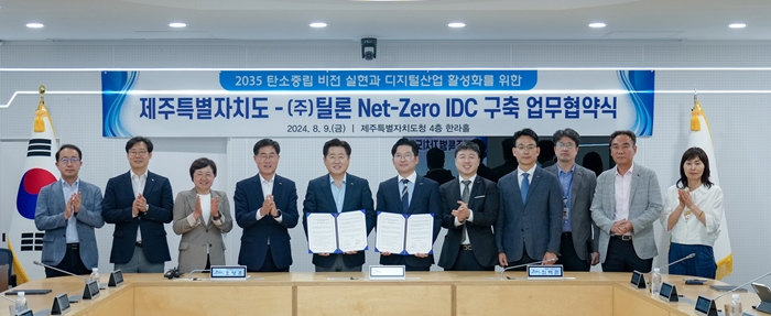 제주도는 지난 9일, 제주도청 4층 한라홀에서 틸론과 ‘에너지 대전환을 통한 2035 탄소중립 실현과 디지털산업 활성화를 위한 넷제로 인터넷 데이터센터(IDC) 설립 업무협약’을 체결했다고 밝혔다.