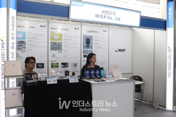 [인더스트리뉴스 이건오 기자] 엠오피는 10월 11일 서울 코엑스 1층 그랜드볼룸에서 개최된 ‘2024 배터리코리아(BATTERY KOREA 2024)’에서 양극재 수명개선용 첨가재 소재 및 3D 프린팅 기술을 선보였다.