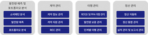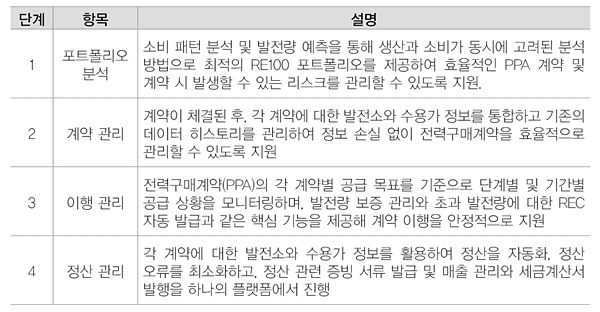이어 “iDERMS는 △PPA 포트폴리오 최적화를 위한 분석 도구 △계약 체결 및 관리 자동화 △실시간 전력 사용량 모니터링 △재생에너지 인증 관리 및 보고서 자동 생성 등 다양한 기능을 통해 기업들이 보다 쉽게 PPA 관련 업무를 수행할 수 있도록 구성됐다” 덧붙였다.