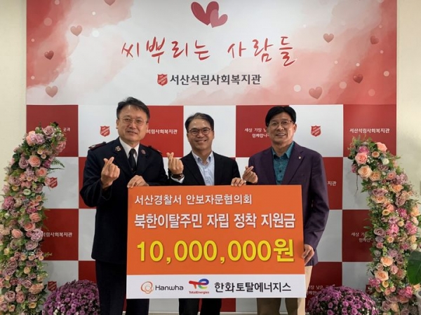 [인더스트리뉴스 홍윤기 기자] 한화토탈에너지스는 충청남도 서산지역 북한이탈주민의 자립과 안정적인 생활을 위한 정착지원금 1000만원을 전달했다고 5일 밝혔다.