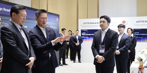 회의장에는 롯데 디자인의 미래라는 주제로 디자인 전시 부스도 마련됐다. 계열사별 디자인 IP(지식재산권)를 내부적으로 공유하고 활용해 IP 경쟁력을 강화할 수 있는 플랫폼에 대한 전략과 AI(인공지능) 디자인 윤리 원칙을 수립하고 확산 하기 위한 방안을 선보였다.
