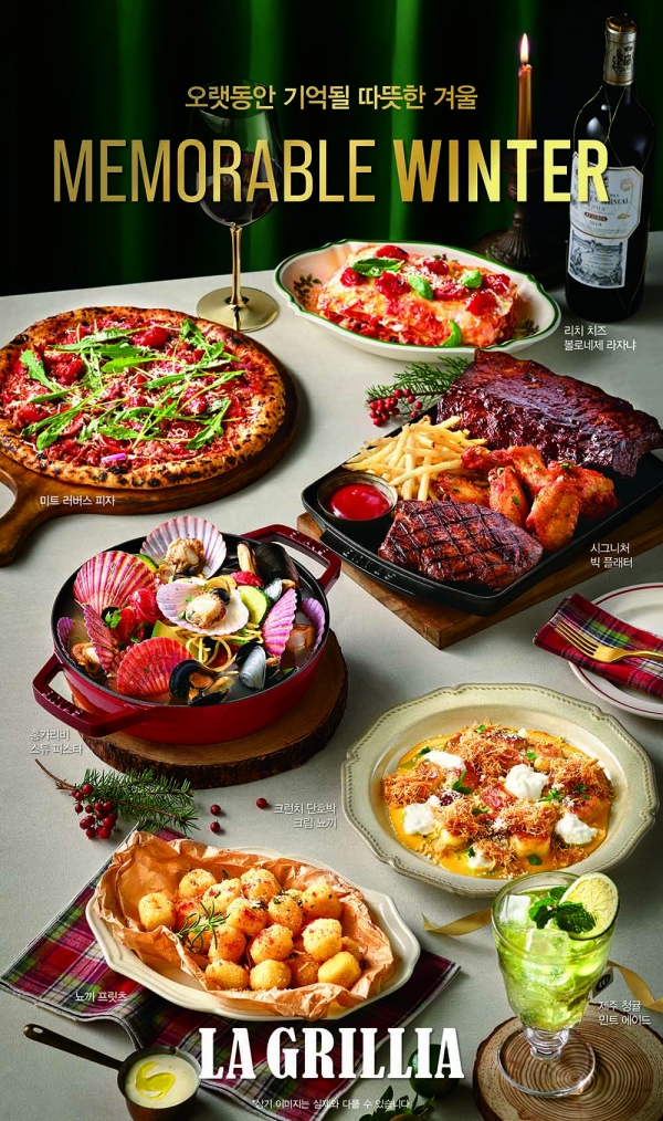 이번에 선보인 시즌 메뉴는 '오랫동안 기억될 따뜻한 겨울'을 주제로 파스타, 그릴 플래터, 피자 등을 라그릴리아만의 레시피로 선보였다.