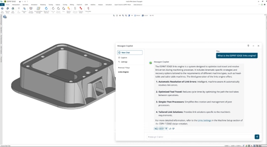 사용자는 이를 통해 소프트웨어 사용법, 특정 부품 제작 과정, 최적의 기계 가공 전략 등에 대한 지원과 안내뿐만 아니라 사용자는 채팅 기능으로 특정 질문을 하고 명령을 실행할 수 있다.