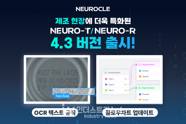 뉴로클이 OCR 텍스트 규칙 기능과 다중 연결 모델 생성 기능 개선은 제조업 비전검사의 새로운 표준을 제시했다.