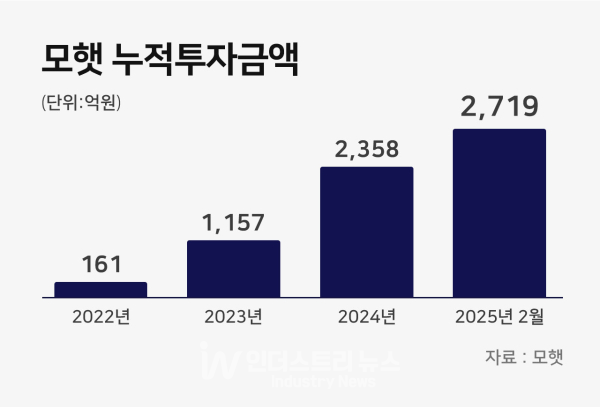 에이치에너지는 지난 2월 26일 기준, 모햇 누적 투자금액이 2,700억원을 넘어섰다고 27일 밝혔다. 본격적인 성장이 시작된 2022년 이후 불과 3년 만에 1,588% 성장한 수치다.