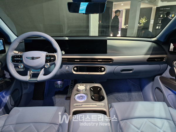 제네시스는 GV60에 클러스터와 AVN 화면 사이의 베젤을 없앤 '27인치 통합형 와이드 디스플레이'를 적용해 고급스럽고 하이테크한 분위기를 조성했다.