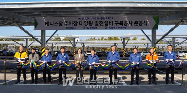 HD현대삼호는 최근 전남 영암의 한 사외주차장에서 김재을 사장을 비롯한 공사 관계자들이 참석한 가운데 ‘태양광 발전설비 준공식’을 개최했다고 지난 4일 밝혔다.
