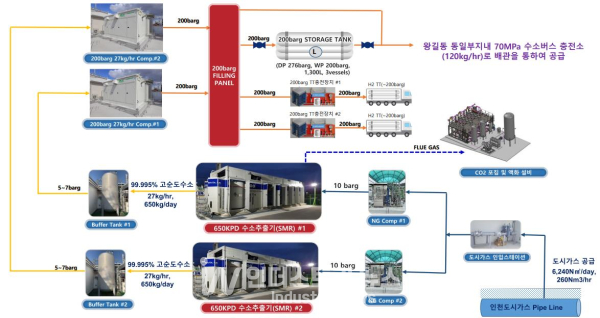 수소생산기지가 완공되면 하루 1.3톤의 수소를 생산할 수 있는 설비와 하루 13톤 규모의 이산화탄소를 포집할 수 있는 설비가 구축된다. 또한, 생산된 수소 가스를 저장하고 출하할 수 있는 시설도 함께 들어선다.