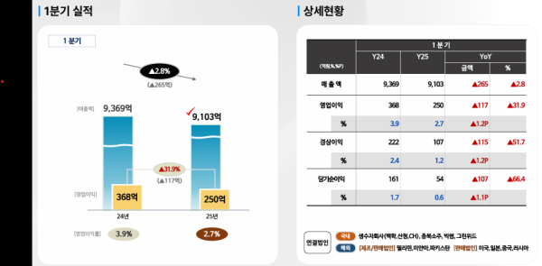 같은 기간 매출은 9103억원으로 2.8% 줄었다.