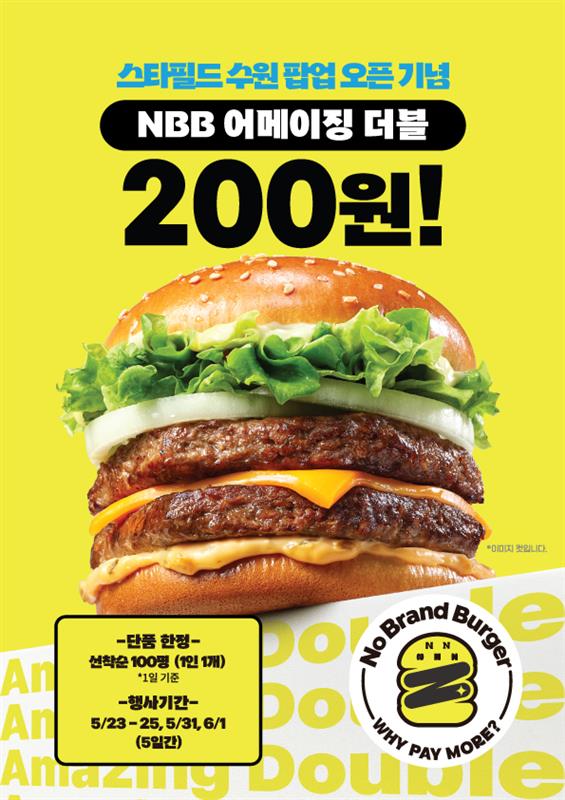 팝업에는 NBB 어메이징 더블을 비롯해 'NBB 어메이징 더블 업', 'NBB 새우' 등 인기 제품만으로 메뉴가 구성됐다. 스타필드 수원 고객들에게 노브랜드 버거의 차별화된 가성비를 제공한다는 계획이다.