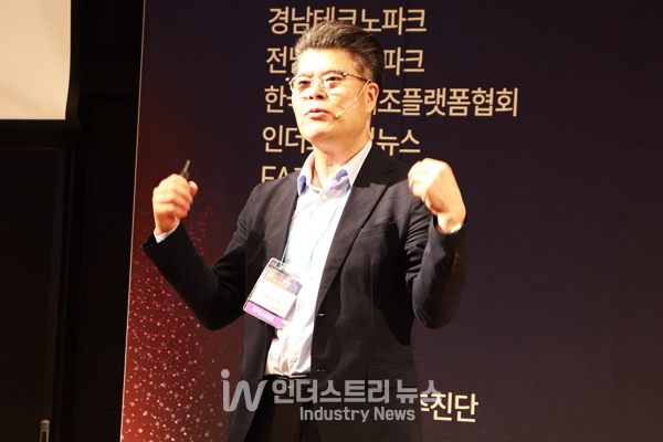 리쉐니에의 이용관 대표는 △자가구축형 자율제조 시스템을 위한 자율제어 가속기(DataStone) 구축과 활용-AI와 CPS로 구현하는 자율화 전략을 주제로 중앙집중식 자동제어 시스템을 탈피한, 분권화되고 자율적인 제조 시스템의 필요성을 역설했다.