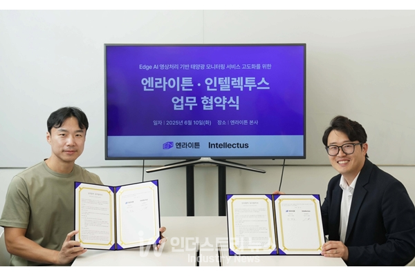 에너지 기후테크 기업 엔라이튼(대표 이영호)은 실시간 데이터 미들웨어 전문 기업 인텔렉투스(대표 김승욱)와 ‘Edge AI 기반 태양광 모니터링 시스템’ 공동 개발을 위한 전략적 업무협약(MOU)을 체결했다고 밝혔다.