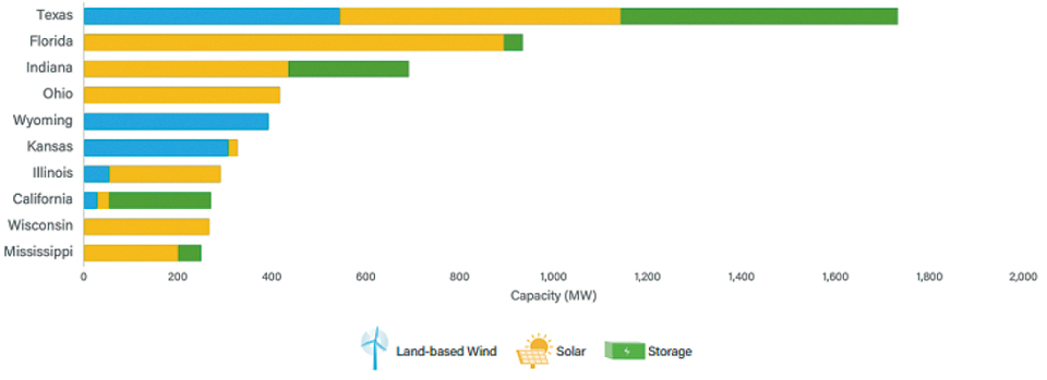 유틸리티 규모 태양광 누적 설치용량은 텍사스주가 주도했고, 신규 설치용량은 플로리다주가 주도했다. IRA의 태양광, 풍력 및 ESS 제조에 대한 세액공제가 연간 330억 달러의 국내 투자와 청정에너지 제조에서 12만2,000개의 일자리를 창출한 원동력이라고 강조한다.