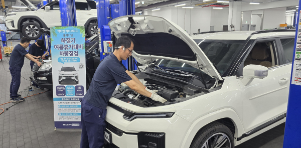 주요 점검 서비스 항목은 ▲차량 내/외부의 헤드램프, 브레이크 램프 등 등화 장치, 에어컨 작동상태 및 필터 ▲엔진룸으로는 엔진오일 및 파워스티어링오일 등 각종 오일류 누유, 냉각수량 및 누수 ▲차량 하부는 브레이크 및 디스크 패드, 타이어 마모 및 공기압 ▲계절별 점검 항목으로는 오일쿨러 파이프 누유 및 조임 상태 확인 등 이다.
