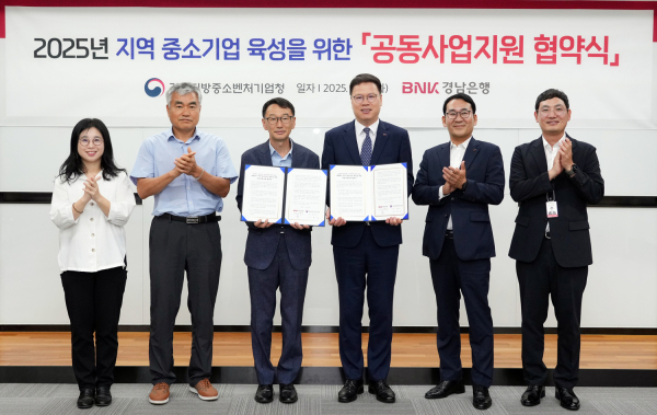 [인더스트리뉴스 김은경 기자] BNK경남은행은 경남지방중소벤처기업청과 ‘2025년 지역 중소기업 육성을 위한 공동사업지원 협약’을 체결했다고 29일 밝혔다.