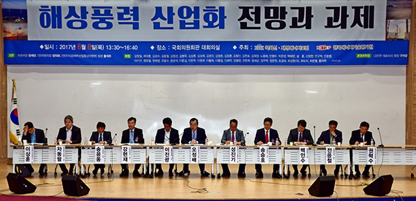 토론회가 열린 국회의원회관 대회실 앞에는 해상풍력관련 전시가 진행됐으며, 한전 전력연구원과 두산중공업, 유니슨 등이 참여했다. 국회신재생에너지포럼 공동대표인 이원욱 의원과 전현희 의원이 참석했으며, 산업통상자원 위원회 유동수 의원, 홍의락 의원, 위성곤 의원, 최운열 의원도 함께 자리했다. 그 밖에 산업통상자원부 우태희 차관과 에너지기술평가원의 황진택 원장도 참석했으며, 해상풍력 관계자 500여명은 물론 일반인들도 많이 참석해서 좌석이 모자랄 정도였다.