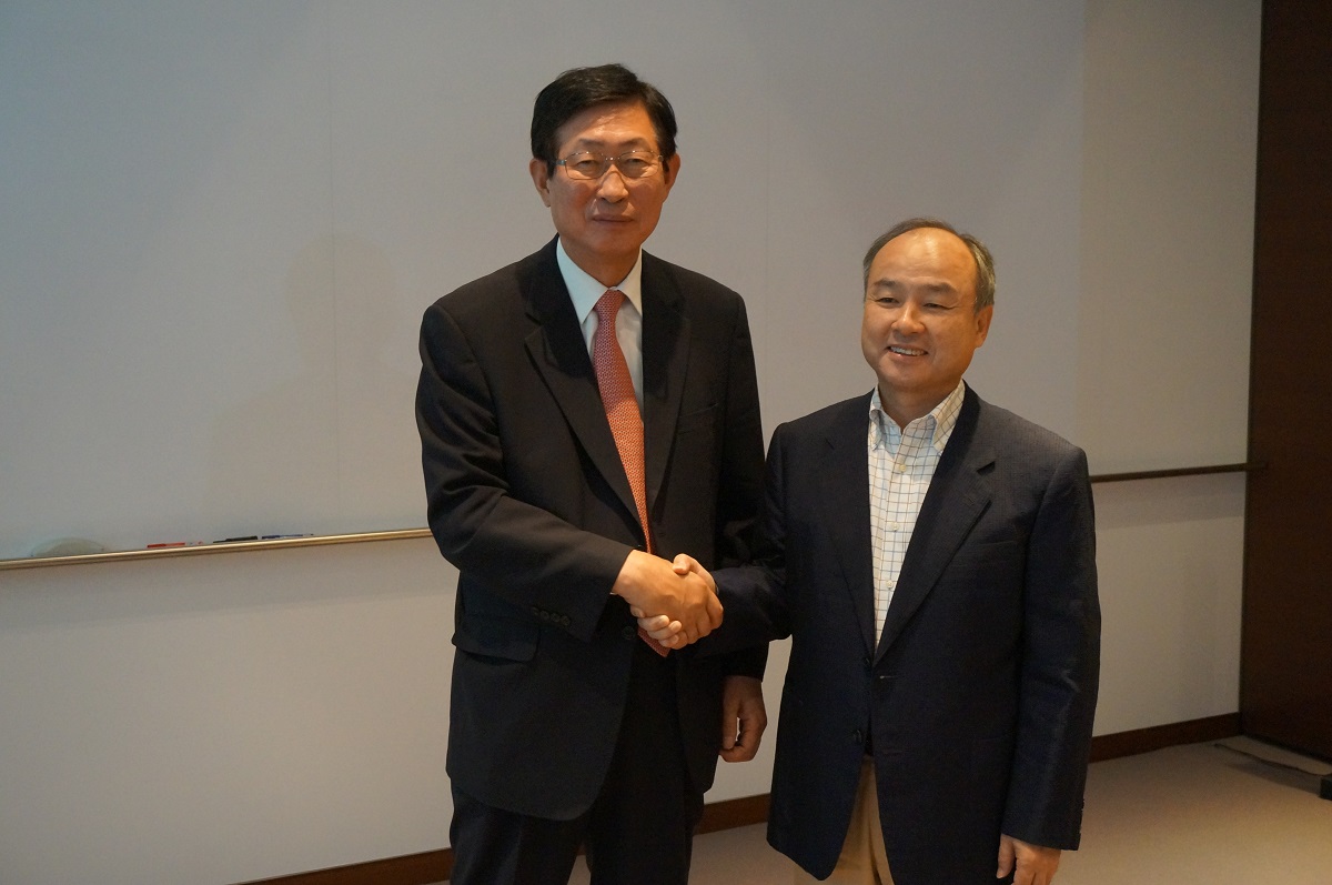 | 조환익 한전 사장이 소프트뱅크 손정의 회장과 만나 동북아 수퍼그리드 등 다양한 사업 추진에 합의했다.[사진=한전] |