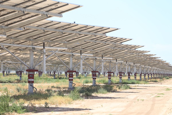 | 양축트래커가 활용된 미국 알라모 태양광발전소 전경[사진=파루] |