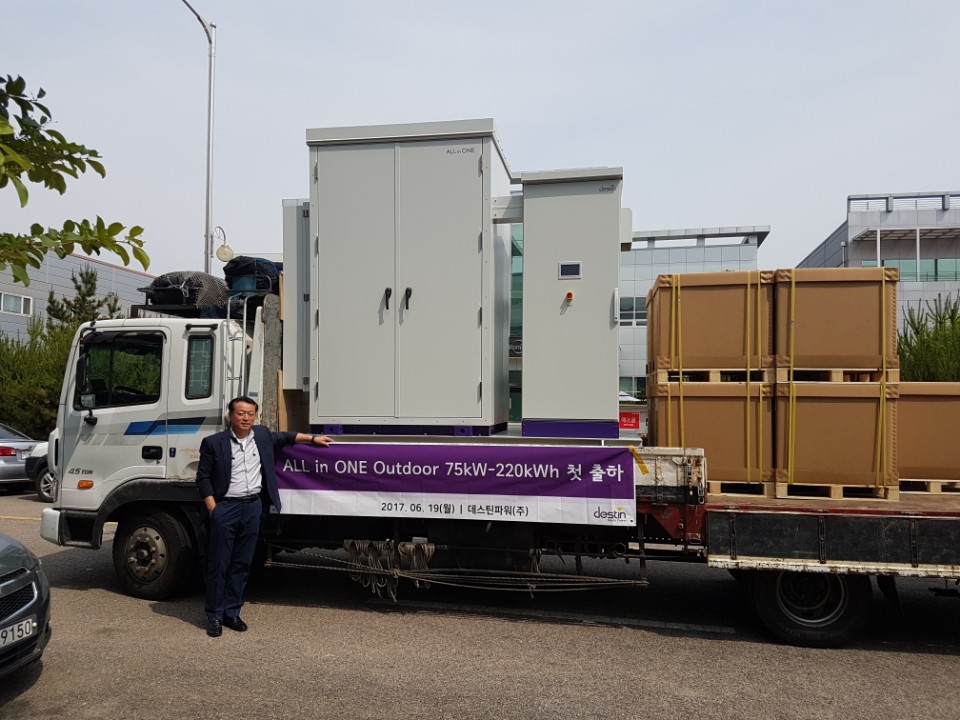 첫 출하제품은 공장 옥상에 설치된 99kW 태양광 연계용 '옥외형 AGTO 75kW-220kWh' 제품으로, 설계 단계에서 스키드 위에 완성된 구성요소를 장착해 제품의 설치시간과 소요면적의 최소화를 이룬 모델이다. 일체형 시스템으로 제작돼 현장에서 설치 당일부터 운영이 가능하며, 데스틴파워의 유지보수 전탐팀이 제품의 유지보수까지 책임지고 있어, 운영에서 발생할 수 있는 소비자의 불편까지 최소화했다.