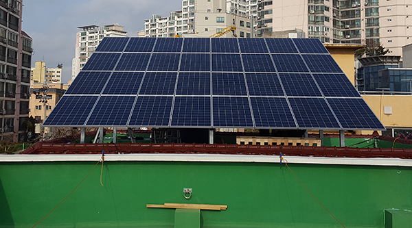 | 에너지 복지사업 1호를 통해 설치된 태양광발전 전경 [사진= 수원시청] |