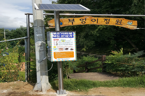 | 창원시 진해보건소가 부엉이 정원에 설치한 태양광 친환경 해충기피제 자동분사기 [사진=창원시 진해보건소] |