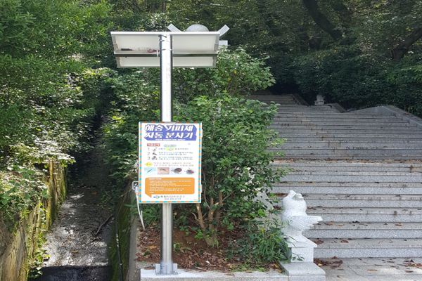 | 친해시 제황산 공원에 태양광 해충기피제 자동분사기가 설치됐다. [사진=창원시 진해보건소] |