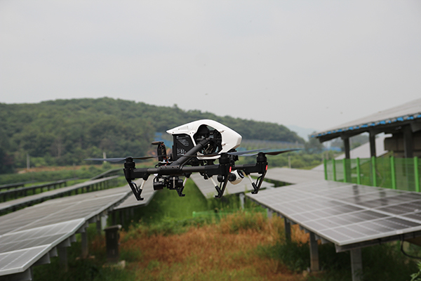 | 열화상 카메라를 장착한 드론이 태양광발전소를 점검하고 있다. [사진=Industry News] |