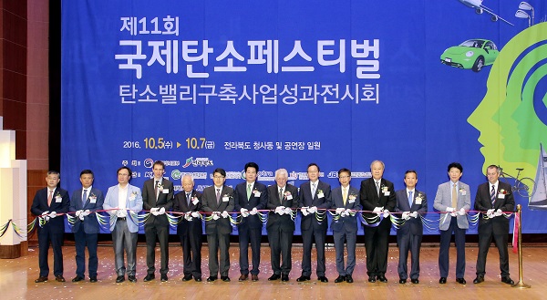 | 올해는 국제탄소페스티벌 최초로 서울에서 개최돼 많은 주목을 받고 있다. 사진은 지난 페스티벌 테이프커팅 전경 [사진=전라북도 탄소산업과] |