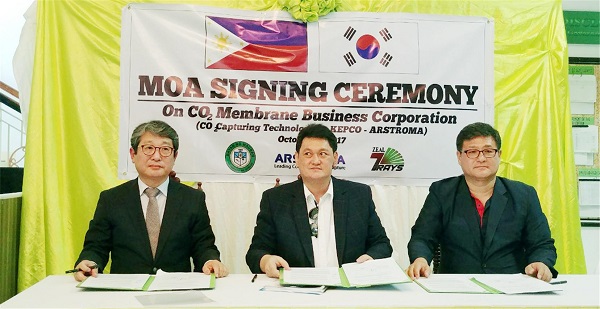 [Industry News 박관희 기자] 세계 최초로 분리막을 이용해 이산화탄소를 포집하는 기술 개발 및 상용화에 성공한 대구의 한 중소기업이 필리핀과 거래조건협정서(MOA)를 체결함으로써 세계진출 교두보를 마련했다. 이산화탄소 포집 전문 기업인 아스트로마는 25일 필리핀 퀘손주 마우반시와 MOA를 체결하고, 동남아와 중국, 일본은 물론 글로벌 시장 진출을 본격적으로 추진한다고 밝혔다.