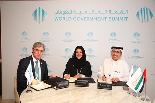 [Industry News 이건오 기자] 두바이에서 열린 제6회 연례 월드 거번먼트 서밋(World Government Summit)에서 2020년 두바이 엑스포 담당 UAE 국제협력부 림 알 하시미(Reem Al Hashimy) 특임장관과 두바이 수전력청(DEWA) 사이드 모하메드 알 타예르(Saeed Mohammed Al Tayer) CEO, 지멘스 조 카이저(Joe Kaeser) CEO 겸 사장 등이 태양광으로 가동되는 전기분해를 통한 수소 생산설비 시범사업을 위한 MOU에 서명했다.