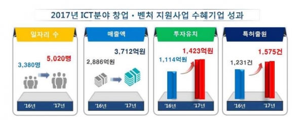 한편, 성장단계(창업→성장→해외진출→재도전)별로 ICT 분야 창업·벤처 지원사업을 맞춤형으로 집중 지원한 결과, 일자리 창출·투자 유치 등 다양한 성공사례를 발굴했다