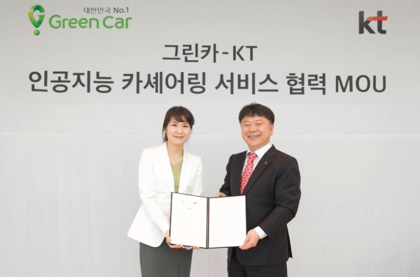 KT는 30일 그린카와 ‘인공지능 카셰어링 서비스 협력을 위한 업무협약(MOU)’을 체결했다고 1일 밝혔다.