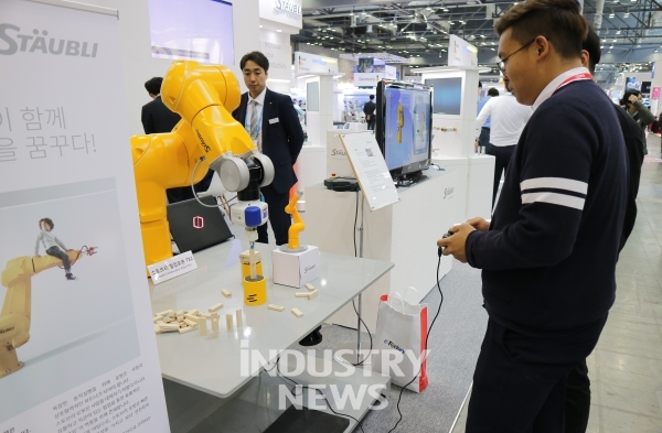 [인더스트리뉴스 박규찬 기자] 스토브리(대표 김문석)는 SIMTOS 2018에서 윈도우 OS 기반 로봇 소프트웨어 SRS(Staubli Robotics Suite)를 통해 사람이 직접 조이스틱으로 컨트롤하는 로봇을 실시간으로 모니터링 하는 시스템을 선보였다.
