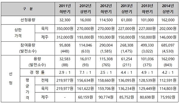 한국에너지공단 신·재생에너지센터 관계자는 “고정가격 경쟁입찰을 통해 소규모 사업자의 안정적인 투자환경을 조성 하고, 신재생에너지와 전력저장장치(ESS) 등 에너지 관련 산업 육성과 투자 안정화에 기여할 것”이라고 밝혔다.