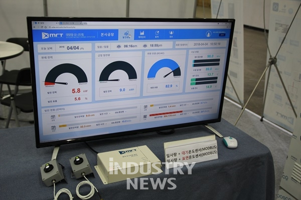 [인더스트리뉴스 박관희 기자] 엠알티(대표 선기주)는 기존 현재 발전량과 금일 발전량, 누적 발전량을 확인 가능한 시스템에 일사량과 대기온도센서, 일사량과 표면온도 센서를 더해 모니터링 가능하도록 설계한 솔루션을 선보였다. 이외 채널별 접속반 전압과 전류도 표시 확인 가능한 시스템을 구축하고 있다.