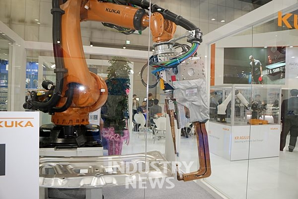 [인더스트리뉴스 박규찬 기자] 쿠카로봇(대표 장길돈)은 SIMTOS 2018에서 쿠카(KUKA)만의 독점 솔루션인 KUKA. RoboSpin(로보스핀)을 선보였다. 이 솔루션은 용접 작업시 용접봉 팀 회전을 위한 로봇 컨트롤 시스템 스팟 알루미늄 웰딩 작업시 Stick-effect 현상이 발생하지 않는 솔루션이다.