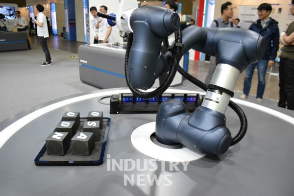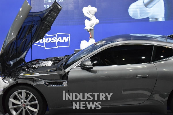 [인더스트리뉴스 전시현 기자] 두산로보틱스(대표 이병서)는 직접 두 명의 사람과 6대의 협동로봇이 함께 아우디 차량을 직접 조립하는 작업을 보여줬다. 가령 협동로봇이 무거운 부품을 운반하면 사람이 세밀한 작업을 한다. 협동로봇 4종은 차량 도어 접합부 글로잉부터 번호판 품질 검사까지 다양한 기술을 선뵀다. 사람이 충분히 할 수 있는 일이지만 로봇이 더해지니 빠른 시간에 많은 일을 할 수 있었다.