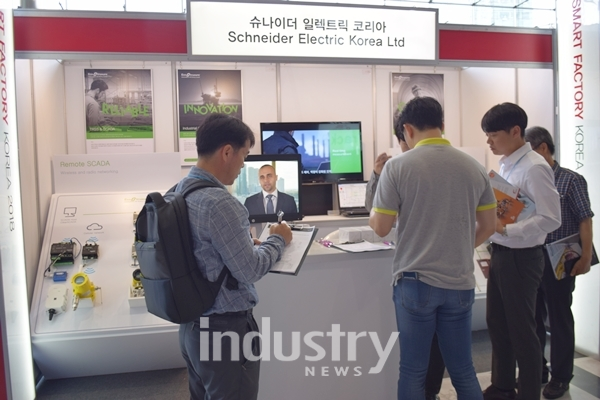 [인더스트리뉴스 전시현 기자] 슈나이더일렉트릭코리아(대표 김경록)는 '디지털 트윈'을 통한 산업 현장의 스마트 공장화를 위한 VR(가상현실) 및 AR(증강현실) 솔루션을 전개했다. 디지털 트윈은 가상 세계와 물리적 세계를 결합해 데이터 분석 및 시스템 모니터링이 가능한 전반적 프로세스, 제품 또는 서비스의 가상 모델이다. 슈나이더 일렉트릭은 현재 산업 현장에서 적용 가능한 VR 및 AR 기술을 보유하고 있다. 한편 2018 서울 국제 스마트팩토리 컨퍼런스 & 엑스포(SMART FACTORY KOREA 2018)는 15일 서울 코엑스 그랜드볼룸에서 개최됐다,