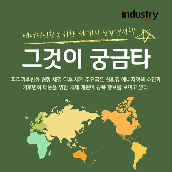 [인더스트리뉴스 최홍식 기자] 파리기후변화 협정 체결 이후 세계 주요국은 친환경 에너지정책 추진과 기후변화 대응을 위한 체제 계편에 광폭 행보를 보이고 있다.