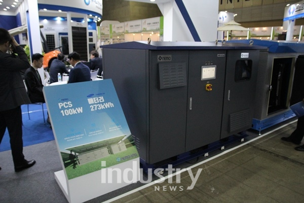 더불어 ESS-PCS 시리즈로 태양광 등 신재생에너지 연계형의 ESS용 PCS를 소개했다. 특히, 기술력과 제작 노하우를 적용해 소형화·경량화에 집중한 네모이엔지는 100kW 소용량 ESS용 PCS를 공개했다.