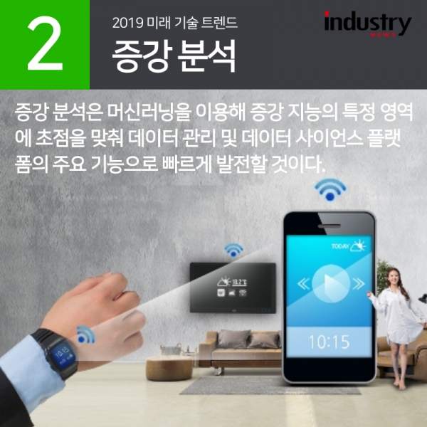 증강 분석은 머신러닝을 이용해 증강 지능의 특정 영역에 초점을 맞춰 데이터 관리 및 데이터 사이언스 플랫폼의 주요 기능으로 빠르게 발전할 것이다.