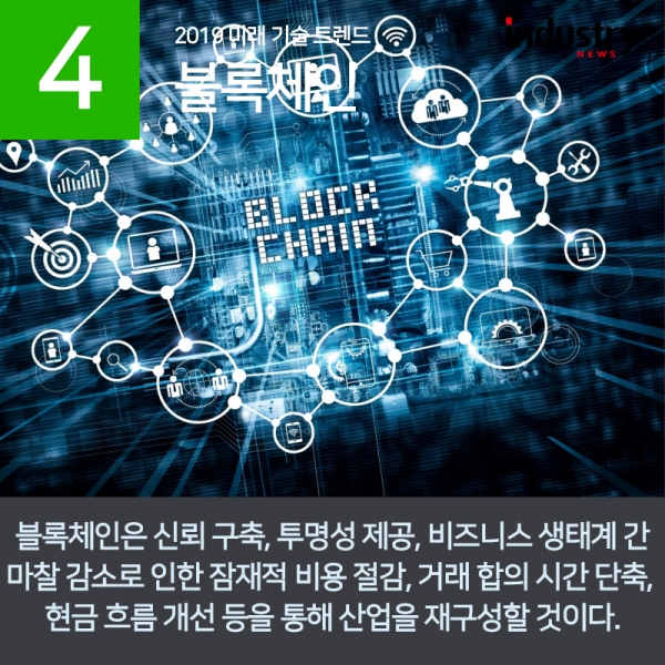 블록체인은 신뢰 구축, 투명성 제공, 비즈니스 생태계 간 마찰 감소로 인한 잠재적 비용 절감, 거래 합의 시간 단축, 현금 흐름 개선 등을 통해 산업을 재구성할 것이다.