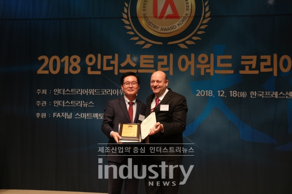 [인더스트리뉴스 방제일 기자] 제조산업 관련 기술개발과 제품개발에 새로운 가치를 창출한 기업을 발굴해 시상하는 ‘2018 인더스트리어워드코리아 대상’이 18일 한국프레스센터 국제회의장에서 개최됐다.