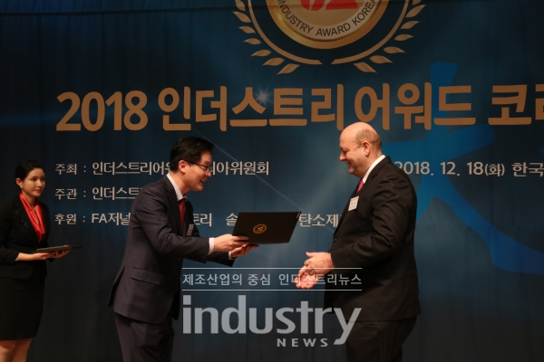 올해 주요 산업부문별 제조 및 기술혁신과 성과창출에 기여한 인물 및 공공기관, 기업의 공로를 치하한 2018 인더스트리어워드코리아 공공부문 산업선도 대상으로 지멘스가 선정됐으며 대표 수상으로 그래터 만프레드 전문가 시상식에 참석해 자리를 빛냈다.