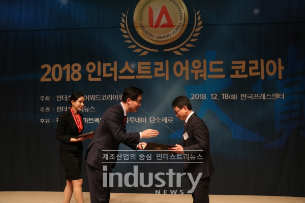 [인더스트리뉴스 방제일 기자] 제조산업 관련 기술개발과 제품개발에 새로운 가치를 창출한 기업을 발굴해 시상하는 ‘2018 인더스트리어워드코리아 대상’이 18일 한국프레스센터 국제회의장에서 개최됐다.
