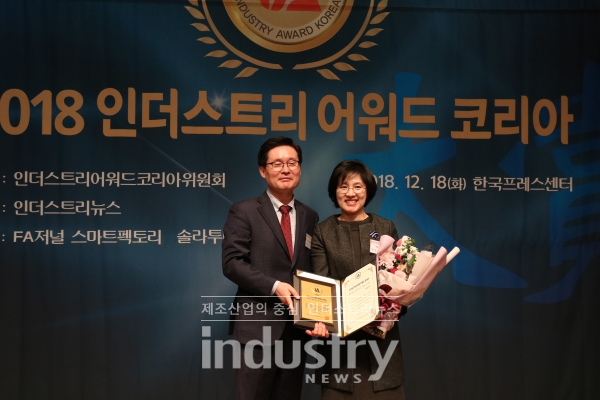 올해 주요 산업부문별 제조 및 기술혁신과 성과창출에 기여한 인물 및 공공기관, 기업의 공로를 치하한 2018 인더스트리어워드코리아 생산제조 솔루션 부문 기업혁신 대상으로 효성ITX가 선정됐으며 대표 수상으로 탁정미 센터장이 시상식에 참석해 수상의 영예를 안았다.