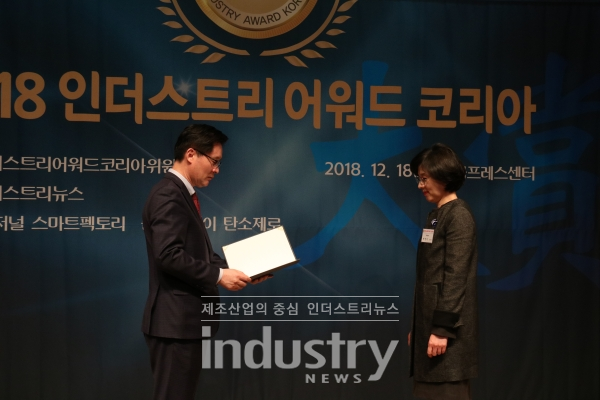 [인더스트리뉴스 방제일 기자] 제조산업 관련 기술개발과 제품개발에 새로운 가치를 창출한 기업을 발굴해 시상하는 ‘2018 인더스트리어워드코리아 대상’이 18일 한국프레스센터 국제회의장에서 개최됐다.