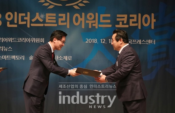 [인더스트리뉴스 이건오 기자] 제조산업 관련 기술개발과 제품개발에 새로운 가치를 창출한 기업을 발굴해 시상하는 ‘2018 인더스트리어워드코리아 대상’이 18일, 한국프레스센터 국제회의장에서 개최됐다.